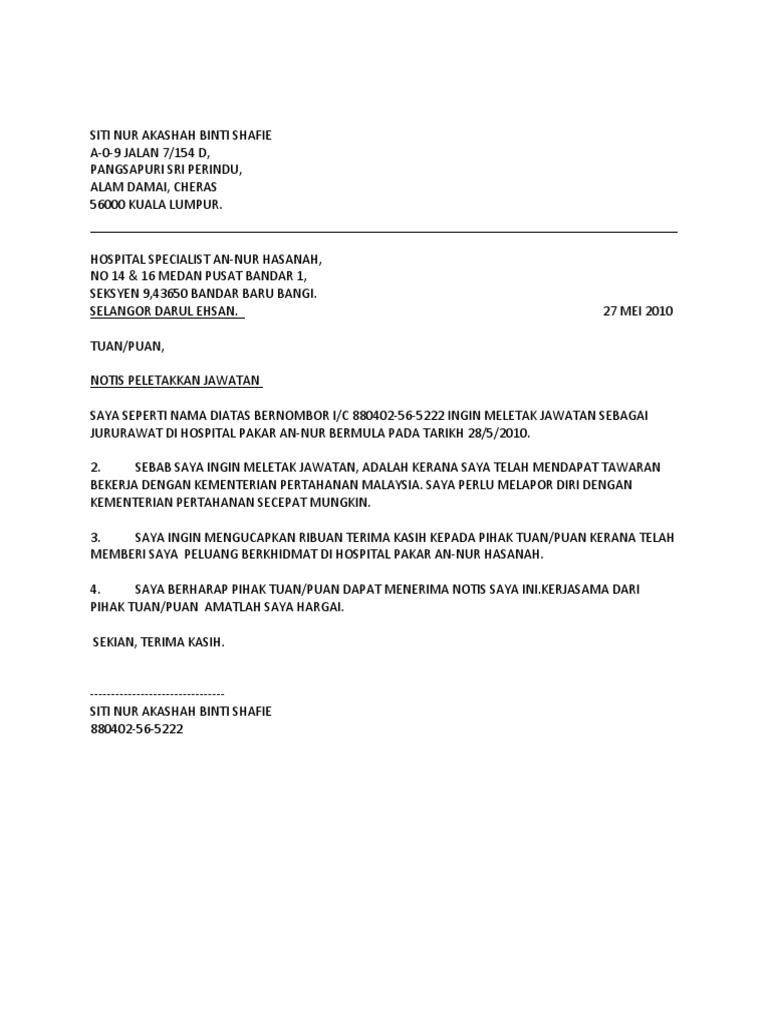 Download contoh surat pengunduran diri.doc. Surat lamaran kerja format doc ataupun word adalah surat lamaran kerja yang paling umum digunakan untuk melamar pekerjaan. Dan harapannya, ia bisa tetap bekerja sampai jangka waktu yang lama bahkan hingga pensiun. Contoh surat resign kerja masa percobaan. Surat pengunduran diri ini sebagai bukti keprofesionalan dalam mengundurkan diri. Jika anda ingin mengundurkan diri atau resign dari kantor tempat anda bekerja sekarang, ada prosedur yang anda harus lewati. Saya berharap perusahaan ini akan terus berkembang, sukses, dan mencapai semua targetnya. Membuat surat lamaran kerja format doc ataupun microsoft word yang baik dan benar memang menjadi suatu keharusan jika ingin lamaran yang anda kirimkan. Untuk mempermudah dalam pembuatan surat pengunduran diri karyawan, berikut ini kami lampirkan template surat pengunduran diri dalam format microsoft word yang dapat diedit sesuai dengan kebutuhan sehingga tidak perlu membuat dari awal. Ada contoh surat resign 24 hours & 1 month notice juga. Jika anda ingin mengundurkan diri atau resign dari perusahaan tempat anda bekerja sekarang tidak bisa dengan cara meninggalkan begitu saja perusahaan tempat anda bekerja, ada prosedur yang harus dilakukan agar. Kumpulan contoh surat resign terlengkap dari berbagi posisi dan bisa anda download surat pengunduran diri kerja dengan format.doc dan dengan pada umumnya surat resign ini dibuat oleh seorang karyawan yang sudah tidak ingin bekerja lagi di tempat perusahaanya dengan alasan tertentu. Resign atau bisa disebut juga dengan mengundurkan diri dari suatu pekerjaan di sebuah instansi atau sebuah perusahaan kadang membuat kita bimbang.